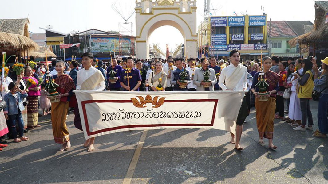 วันที่ 1 กุมภาพันธ์ 2563 ดร.สุเทพ อารมณ์รักษ์ คณบดีวิทยาลัยการท่องเที่ยวและอุตสาหกรรมบริการ มหาวิทยาลัยนครพนม มอบหมายให้อาจารย์ปิยะพงษ์ นาไชย รองคณบดี พร้อมด้วยบุคลากรและนักศึกษา ร่วมพิธีแห่อัญเชิญพระอุปคุต ในพิธีเปิดงานนมัสการองค์พระธาตุพนม ประจำปี 2563” ระหว่างวันที่ 1-9 ก.พ.63 ณ วัดพระธาตุพนม อ.ธาตุพนม จ.นครพนม โดยมีพุทธศาสนิกชนทั้งชาวไทยและชาวต่างชาติ ร่วมประกอบพิธีเป็นจำนวนมาก