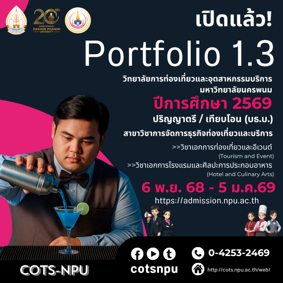 สาขาวิชาการจัดการธุรกิจท่องเที่ยวและบริการ (ป.ตรี) หลักสูตรบริหารธุรกิจบัณฑิตสาขาวิชาการจัดการธุรกิจท่องเที่ยวและบริการ (หลักสูตรปรับปรุง พ.ศ. 2568) วิชาเอก 1 การท่องเที่ยวและอีเวนต์ (Tourism and Event) 2 การโรงแรมและศิลปะการประกอบอาหาร…